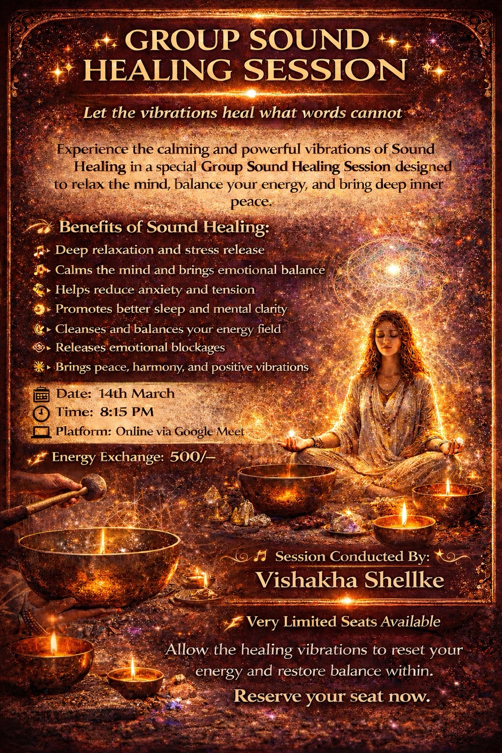 Experience the calming and powerful vibrations of Sound Healing in a special Group Sound Healing Session designed to relax the mind, balance your energy, and bring deep inner peace.